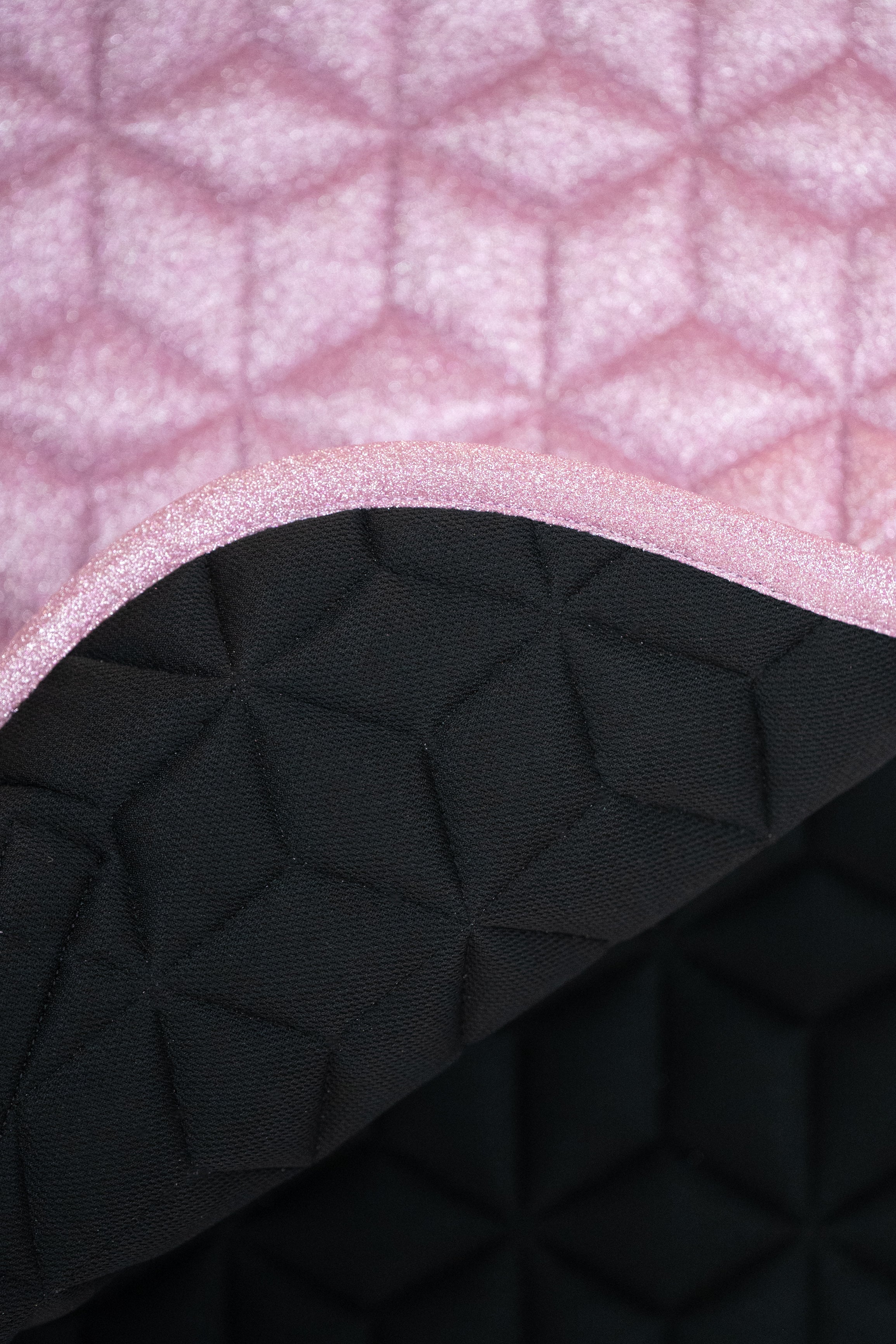 Die Sparkle Satteldecke hat auf der Unterseite ein weiches 3D Air-Mesh Material. Die Oberfläche ist durch die Glitzer Optik etwas rauher.