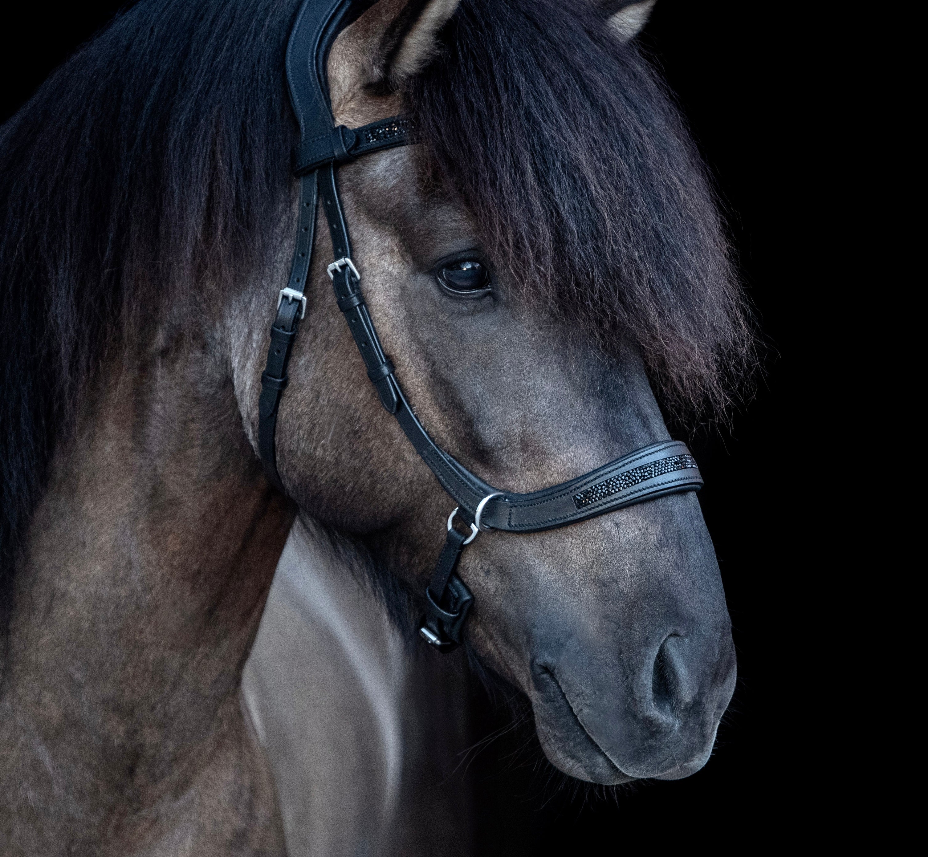 Particular attention is paid to the noseband. Anatomically shaped and available in various styles, it adapts perfectly to the sensitive head area. Whether anatomical, Hanoverian, English combined, or comfort – each style is designed to prevent pressure points and protect the sensitive nerve area. A CrownHorse anatomical bridle for Icelandic horses fits softly and securely without constricting, allowing the rider to communicate subtle aids more clearly and precisely.