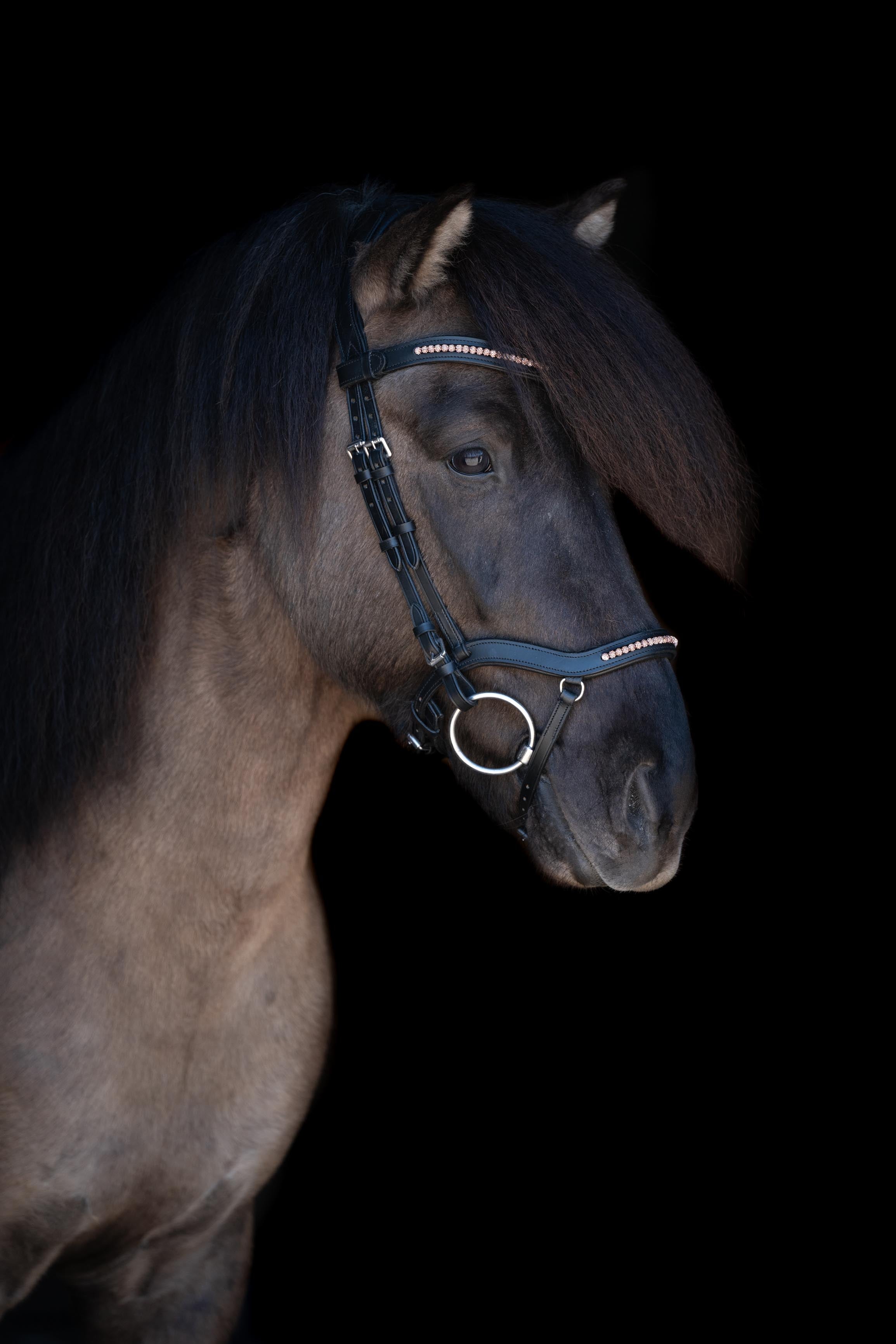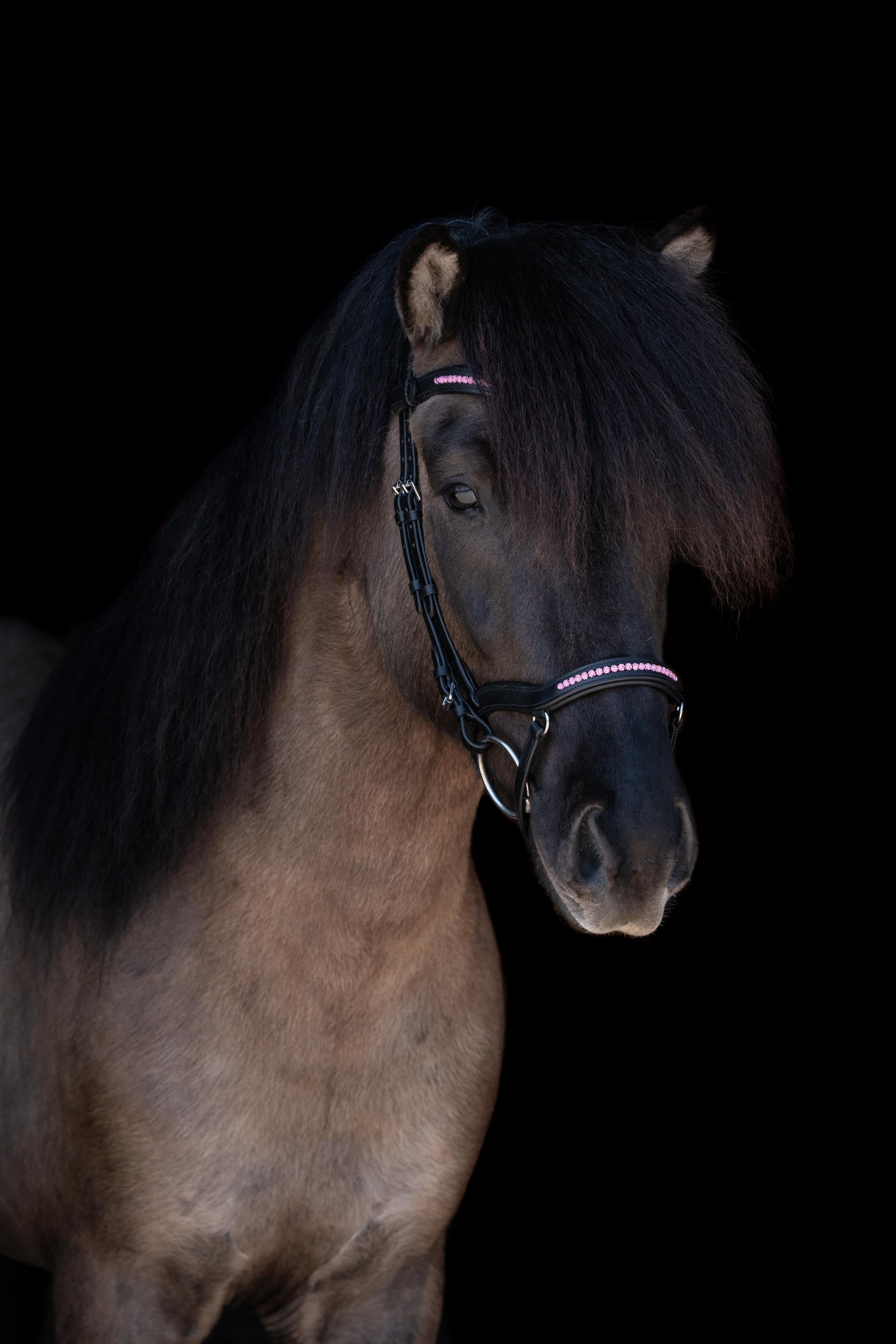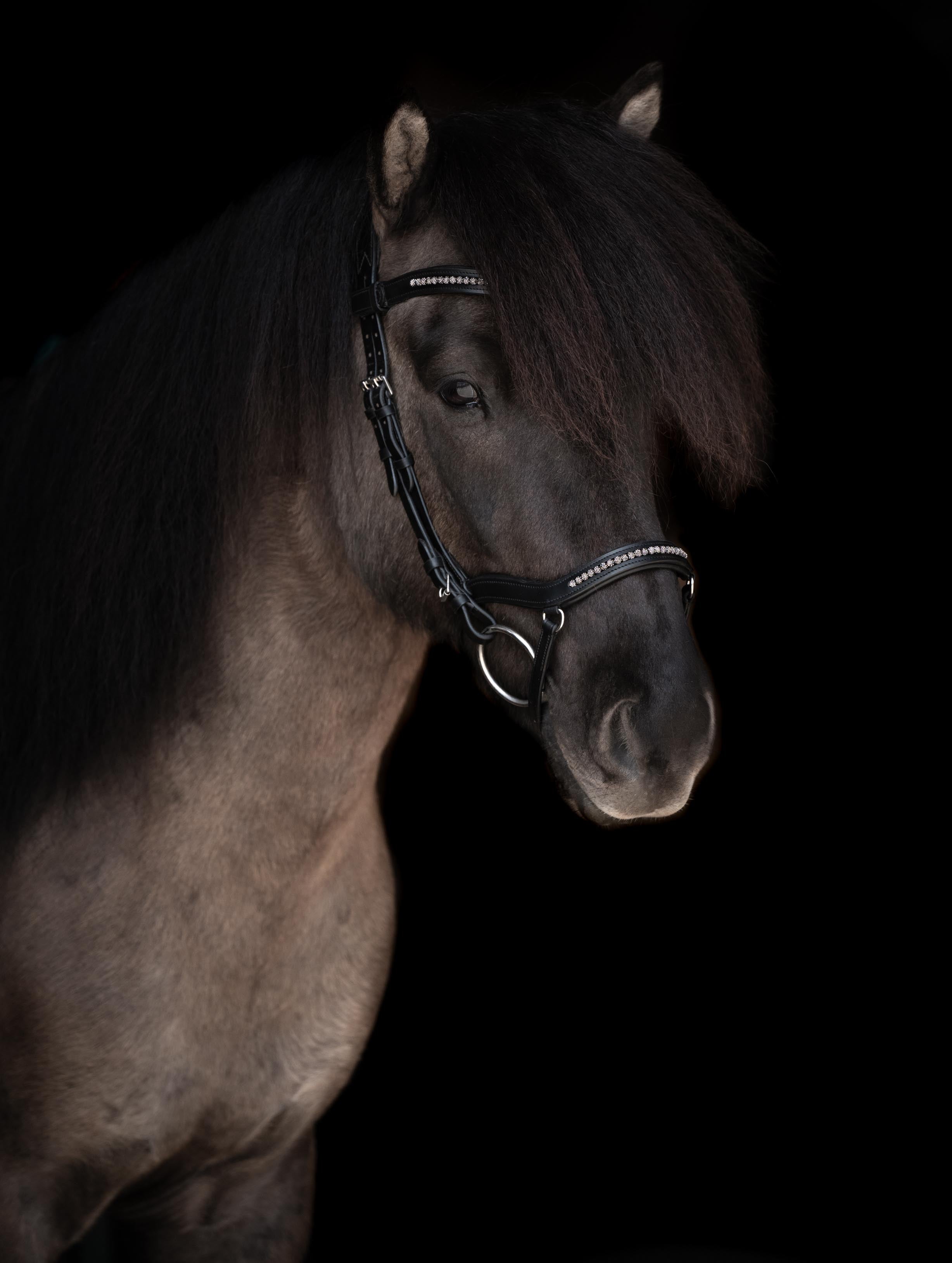 CrownHorse's anatomical bridles stand for the highest quality, a perfect fit, and elegant design, developed with a special focus on the needs of Icelandic horses. A bridle for Icelandic horses must not only be functional but, above all, offer comfort so that the horse can work freely and relaxed. This is precisely CrownHorse's commitment. Each anatomical headpiece is softly padded, provides additional ear clearance, and relieves pressure on the sensitive nuchal ligament. The result is a bridle that distributes pressure evenly and prioritizes the horse's well-being.