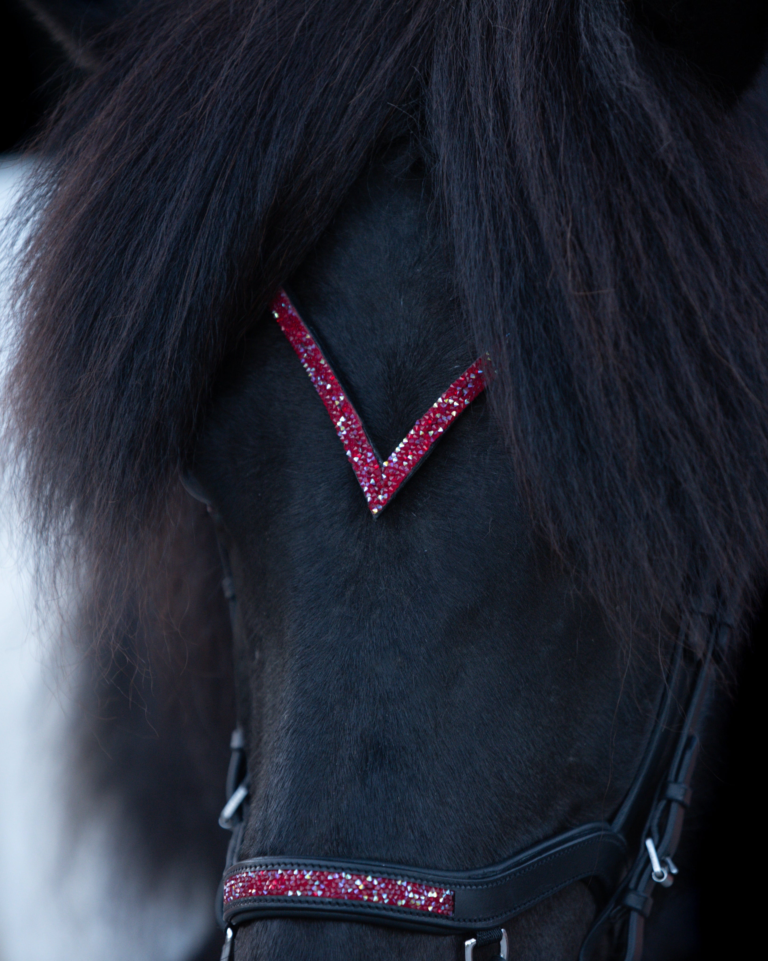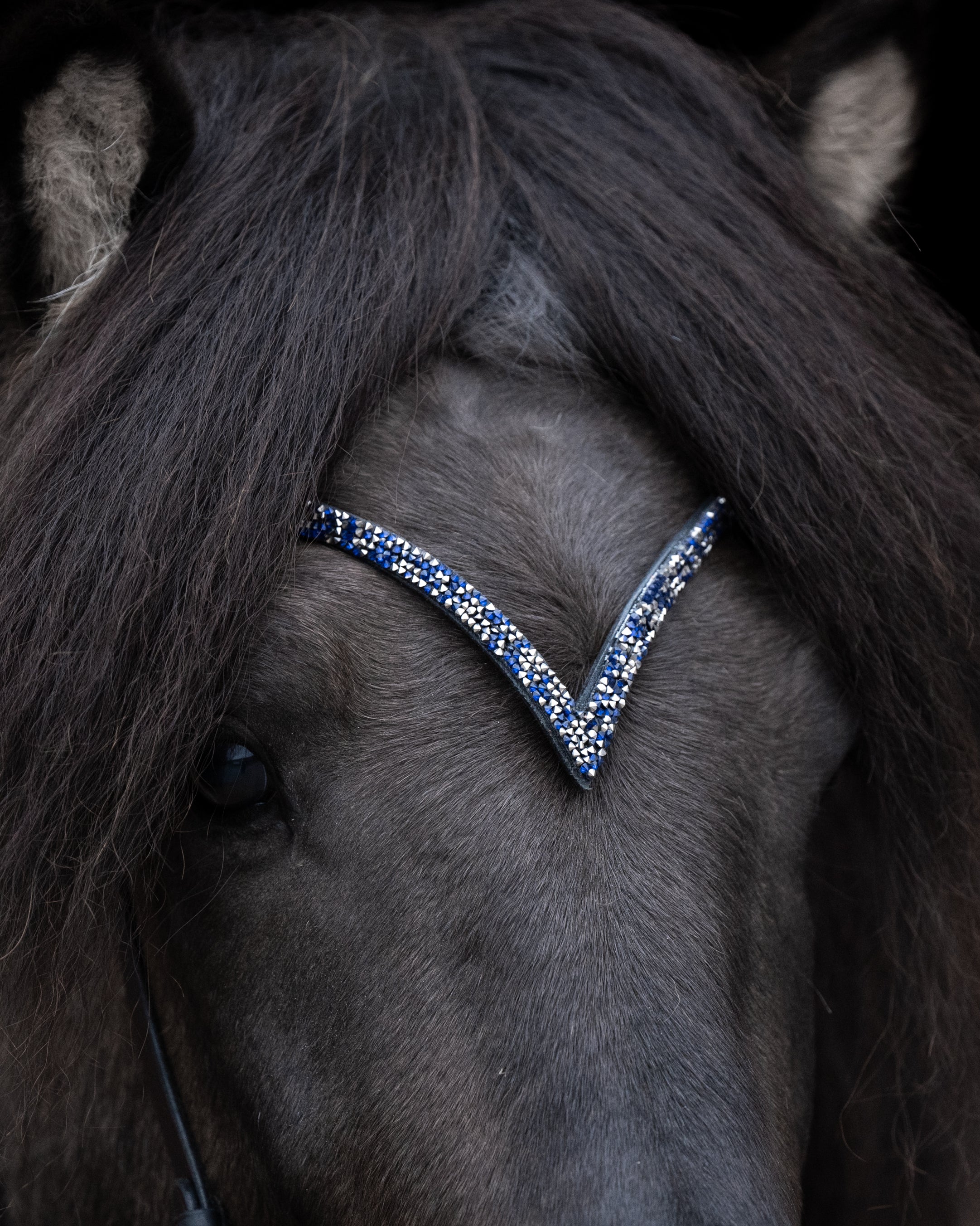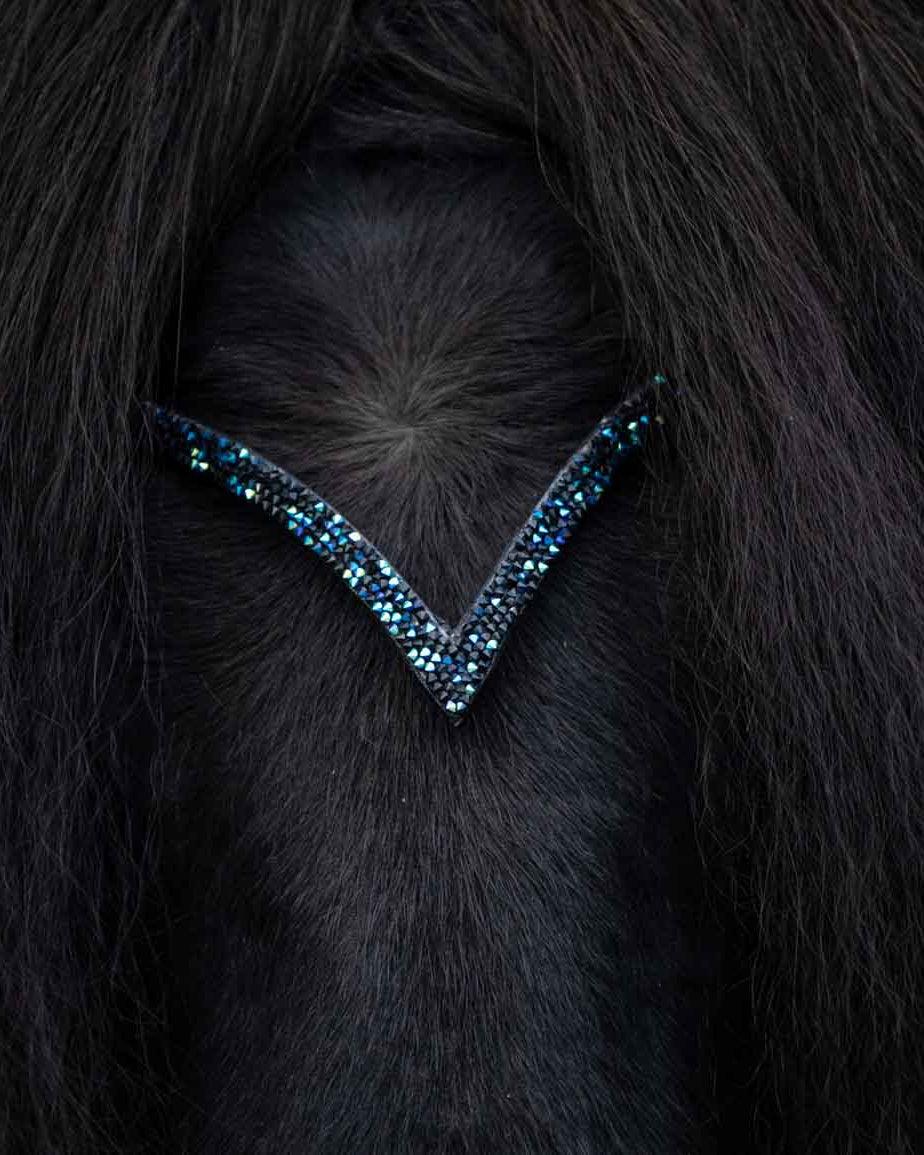 The V-shaped browband for Icelandic bridles accentuates the dynamism and ambition of your Icelandic horse. Made from high-quality leather with superior craftsmanship, it offers an optimal fit and exclusive design. Thanks to the quick-change system, the browband can be easily replaced and perfectly matched to your Icelandic horse in various colors.